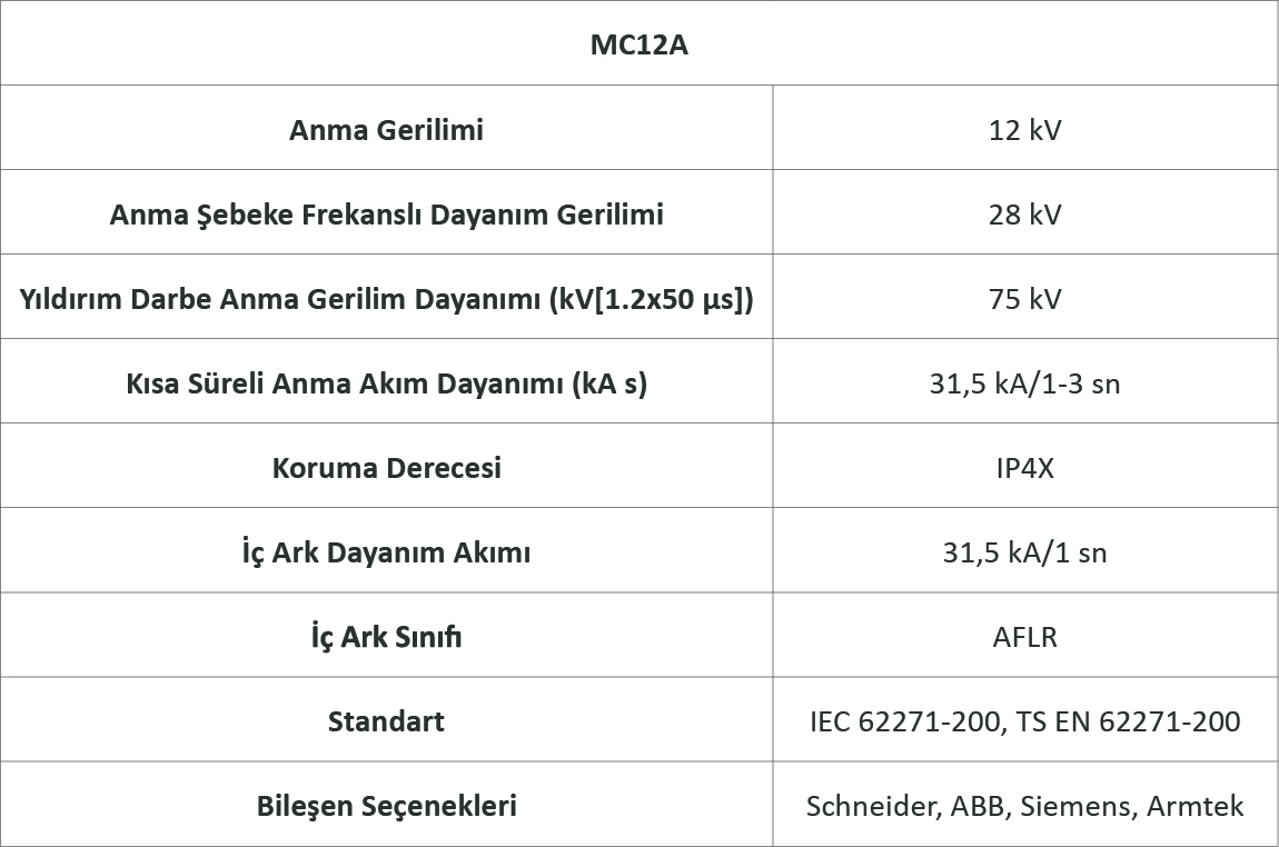 İç Ark Dayanım Akımı | 31.5kA / 1 sn | 31.5kA / 1 sn | 25kA / 1 sn |