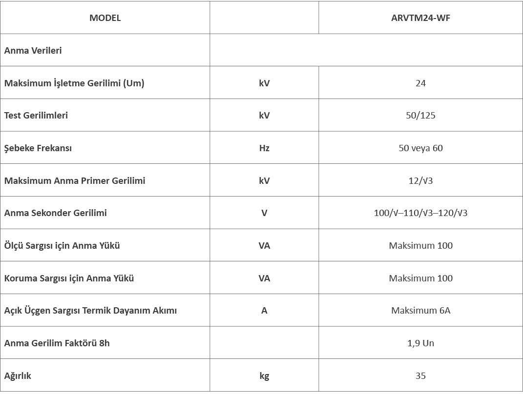 Maksimum İşletme Gerilimi (Um) | kV | 24 |