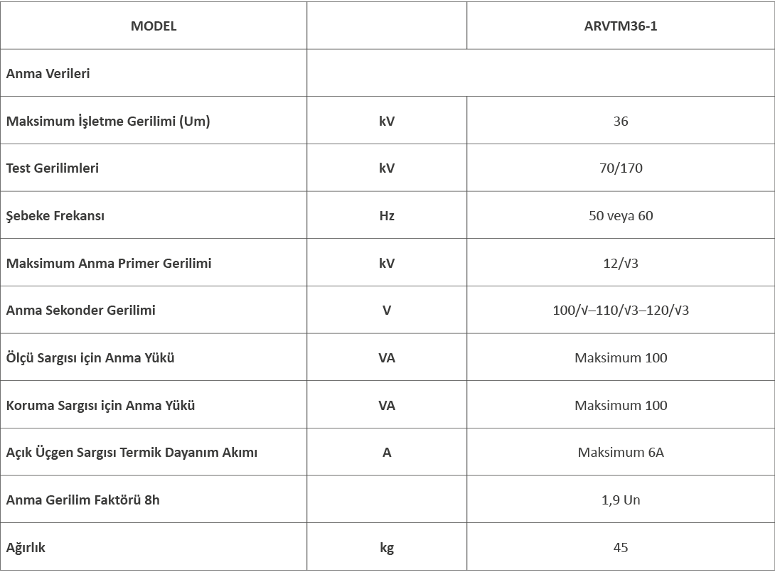 Maksimum İşletme Gerilimi (Um) | kV | 36 |
