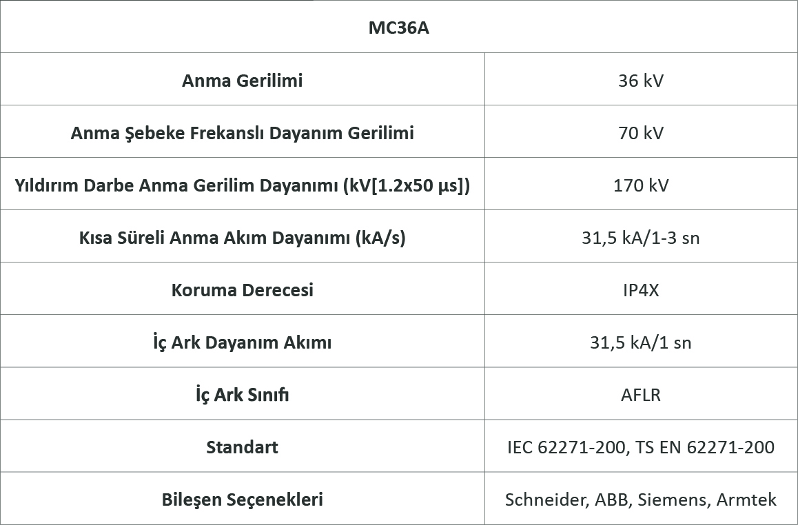 İç Ark Dayanım Akımı | 31.5kA / 1 sn | 31.5kA / 1 sn | 25kA / 1 sn |