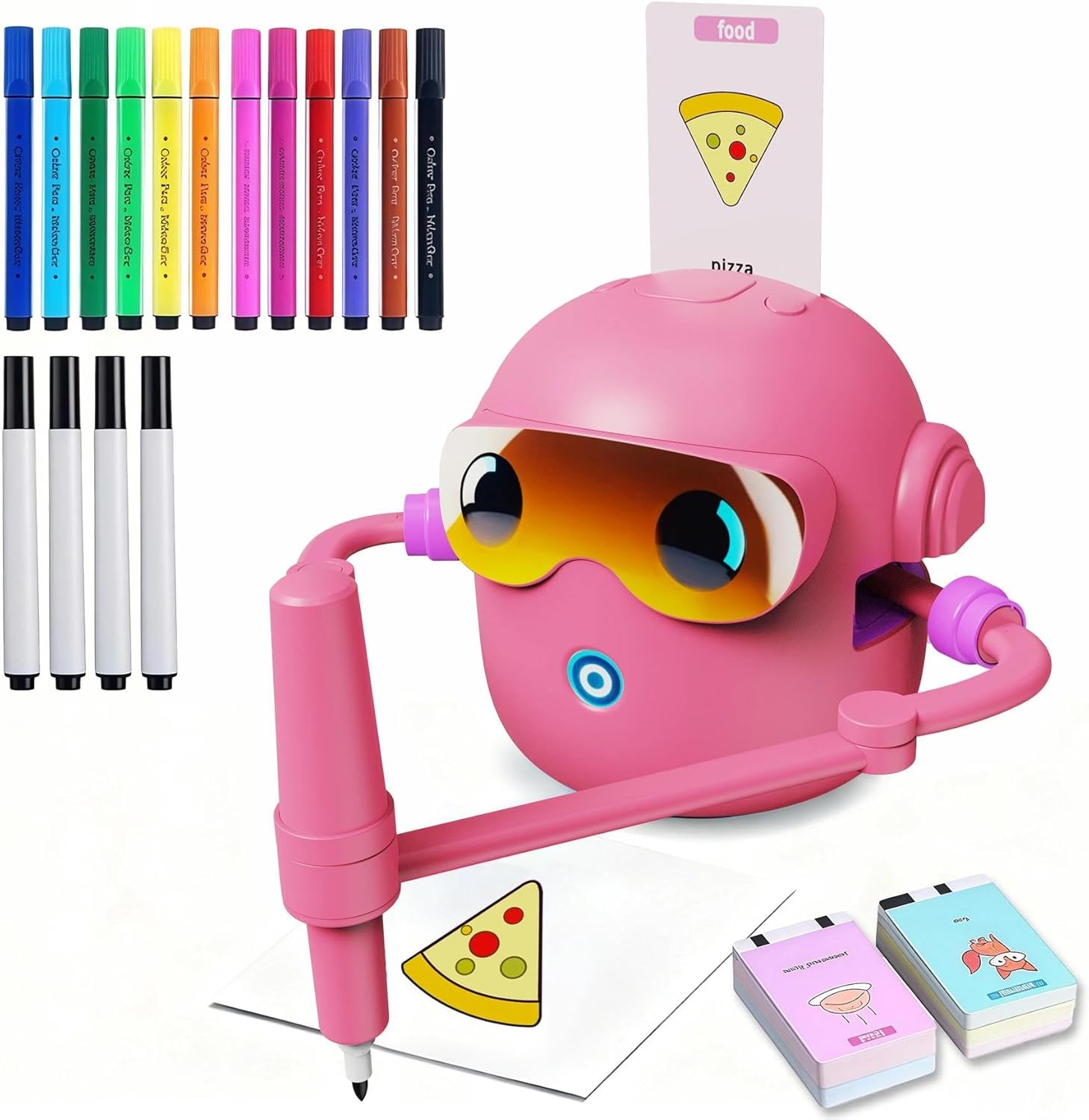đ¨ Why Choose Our Drawing Robot?Learn Through Play: Through step-by-step guided drawing, children significantly improve hand-eye coordination, fine motor skills, and problem-solving abilities while building creative confidence.Immersive Interaction: With built-in cheerful music and intuitive instructions, kids stay highly focused for hours, enjoying the sense of achievement from independent creation and an engaging audiovisual experience.Rich Themes: Includes 100 reusable drawing cards covering diverse themes like animals and vehicles, fully stimulating imagination and cognitive skills.đ Ready to Use, Perfect as a Gift:Includes: Drawing Robot Ă1, Mechanical Arm Ă1, Data Cable Ă1, Drawing Cards Ă100, Drawing Pens Ă4, and a 12-color Pen Set. An ideal educational gift for birthdays, Christmas, and various holidays.Get yours now and ignite your childâs creative spark!